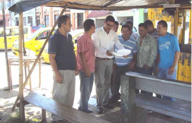 Allí se ubicaban taxis que prestaban el servicio en el municipio y colectivos que cubrían rutas intermunicipales, pues en la terminal de transportes están únicamente los vehículos que cubren la ruta hacia Manizales.