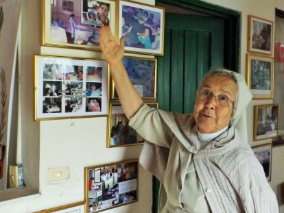 Sor Cecilia muestra orgullosa las fotos de una alumna que se rehabilitó luego de años de drogadicción. “Tuvo un hijo y ella misma le confeccionó el ajuar al bebé”.