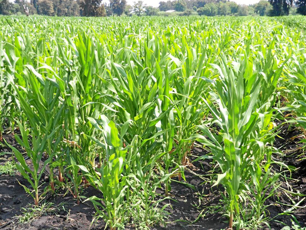 *En maíz: las hojas inferiores se entorchan y se oscurecen. El sistema radicular de la planta es pobre y los tallos tan débiles, que se quiebran.