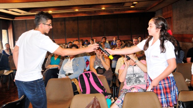La cita se dio el pasado miércoles, en el Fondo Cultural. Hasta allí, pese al paro de maestros y receso escolar, llegaron delegaciones de 26 colegios de Caldas. Objetivo: ser partícipes de una rueda de prensa, en la que corresponsales y maestros, se convirtieron en periodistas por unos 45 minutos.