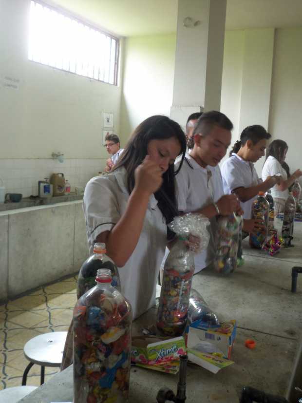 “Los residuos plásticos son compactados en las botellas. De esta manera estamos colaborando con la empresa de aseo del municipio, evitamos que el plástico sea tirado en vertederos o rellenos sanitarios y, a su vez, la contaminación que genera estos residuos”, explicó una integrante del equipo ambiental.