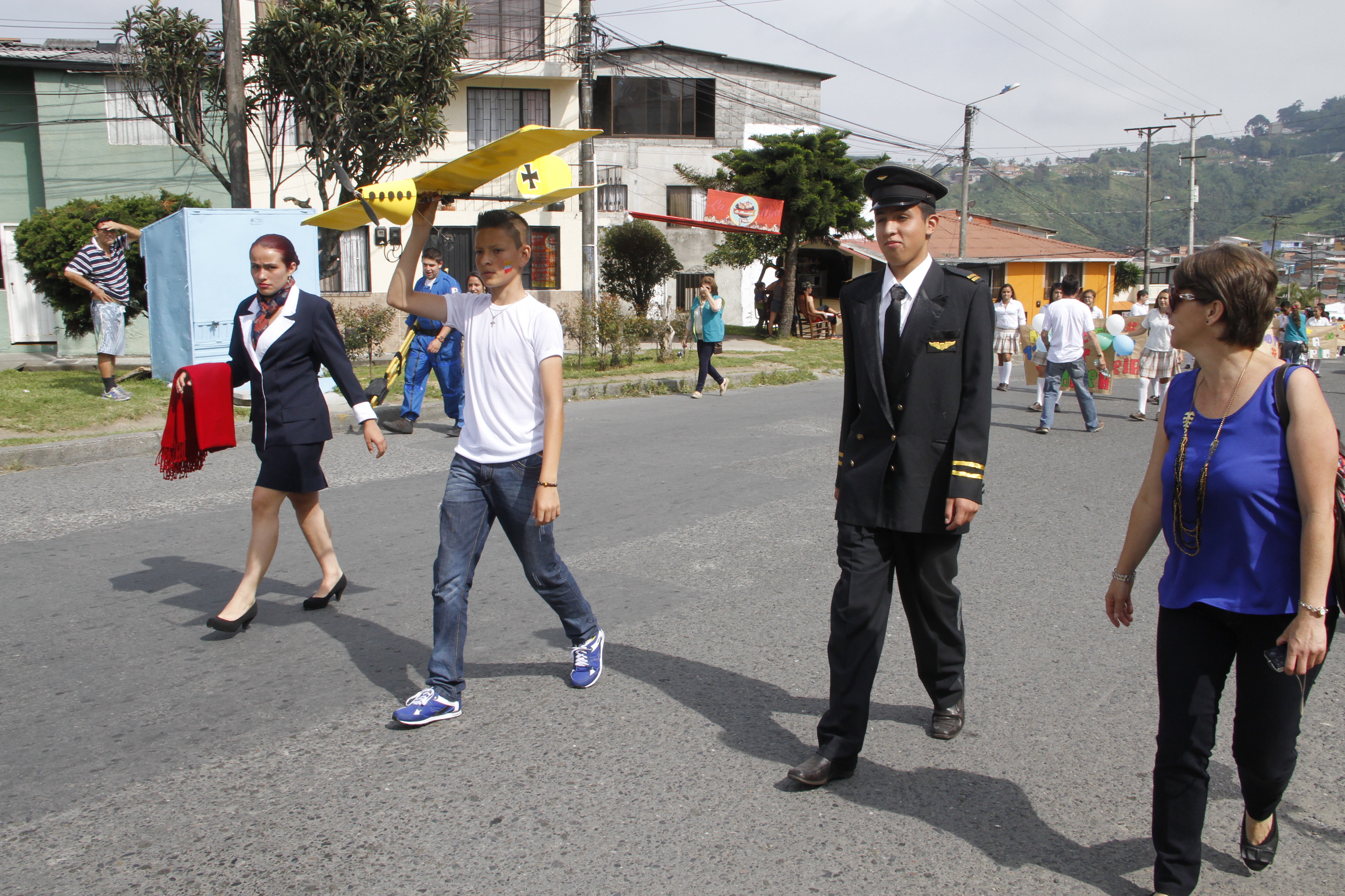 Juan Carlos Ramírez, de undécimo grado, representó durante la jornada al aviador Jaime Duque. Vistió un traje de piloto y orgulloso relató de este algunos datos. "Fue muy exitoso. Su vida y obra son un ejemplo. En eso quiero parecerme a él; en triunfar y dedicar mi vida a ayudar a mis semejantes", dijo el joven.
