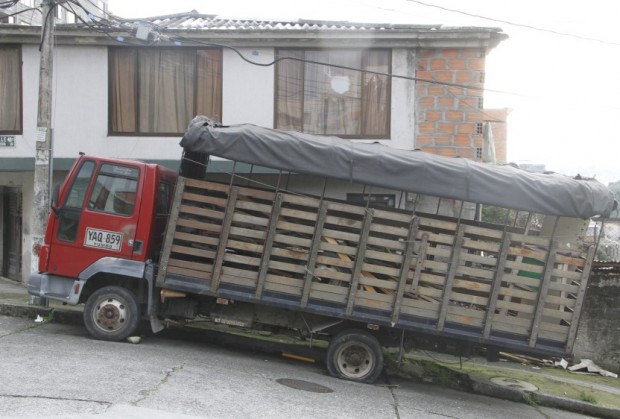Manizales. Vecinos de la calle 48C con carrera 19, esquina, en el barrio San Jorge de Manizales, se muestran preocupados por un camión de placas YAQ 859 de Yumbo (Valle) que está parqueado allí desde hace dos años, según denuncian. Dicen que el riesgo es porque está en una pendiente y tiene sus llantas gastadas y desinfladas, además de servir como basurero.