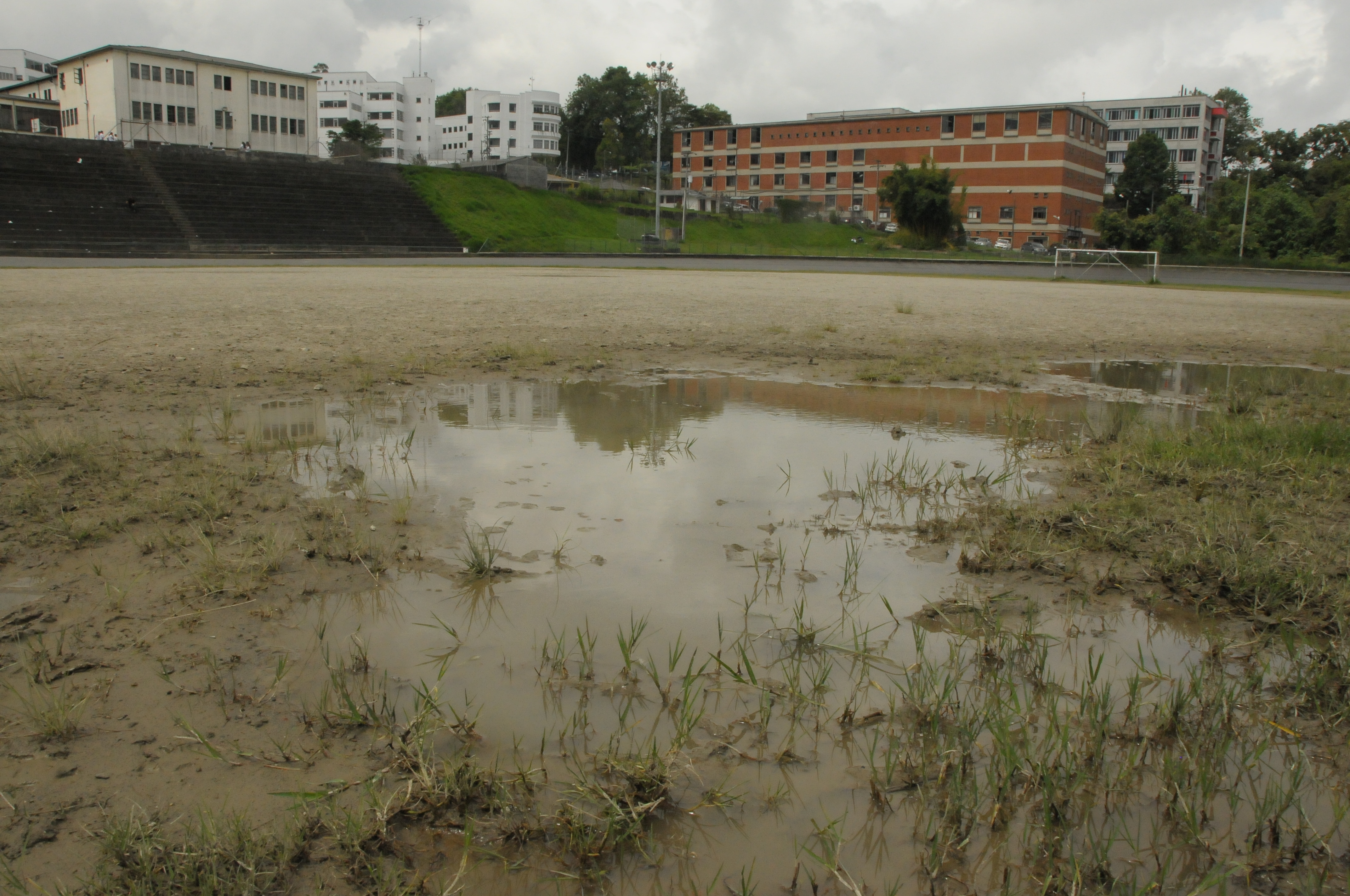 Cuando llueve se forman charcos, debido al desnivel del terreno, por eso los futbolistas que acuden al escenario solicitan que la organicen.