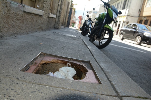 1. En la carrera 24 entre calles 26 y 27. Al parecer lleva varios días sin este accesorio, pues en los bordes se ve el desgaste.