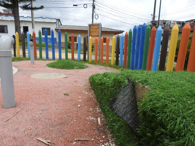 El parque infantil del barrio Cristo Rey, inaugurado y entregado a la comunidad a finales del año pasado, ya presenta deterioro. Según la comunidad, hay daños en una puerta de ingreso, columpios a punto de colapsar, a otros juegos les hacen falta partes y la fuente de agua también presenta fallas. Agregan que el sitio era para la recreación de niños, pero que en repetidas oportunidades ven jóvenes y adultos utilizando los juegos infantiles, lo que quizás aceleró el deterioro del parque.
