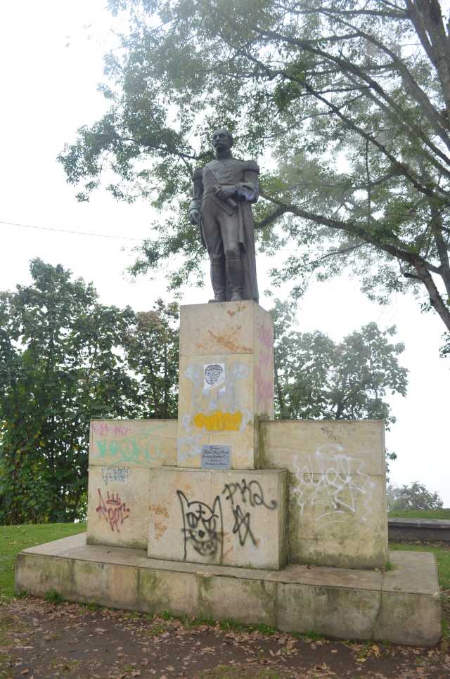A la fundición en bronce del general Rafael Reyes Prieto, del escultor Gonzalo Quintero, le pintaron las mangas y la base tiene grafitis.