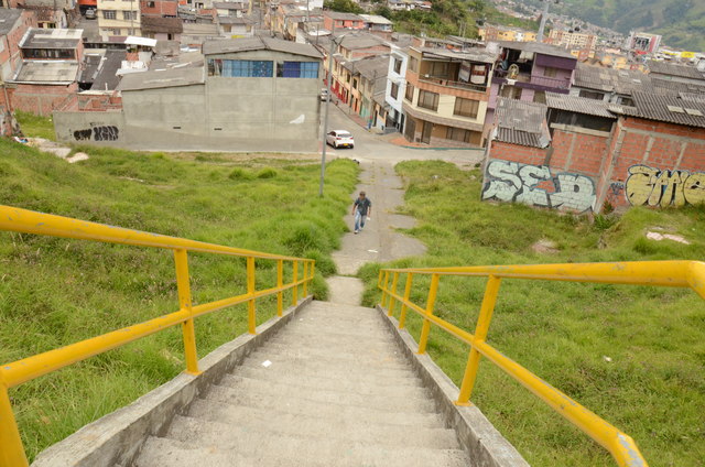Manizales. Un habitante del barrio Cervantes se queja de que están atracando en donde ocurrió el deslizamiento que mató a 48 personas el 5 de noviembre del 2011. Actualmente, en el sector hay unas escaleras. El residente señala que los ladrones se ubican allí para robar: "Una sobrina pasó hablando por celular y se lo arrebataron". También comenta que el sitio es punto de encuentro para pandillas que pelean con armas blancas y de fuego, asegura. "Tenemos miedo", dice el hombre. Hay otra preocupación: una baranda cuyas bases están dañadas y que está en la calle superior del predio en donde sucedió la tragedia. "Alguien puede recostarse en ella e irse al vacío", dijo un hombre.