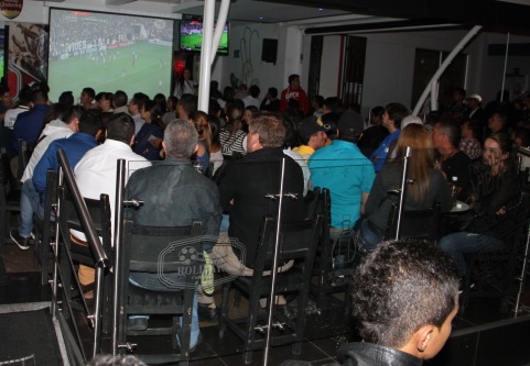 Decenas de personas se acomodaron en Holidays, Fondo blanco y Cable Bar. Televisores y pantallas repartidas en los tres lugares hicieron que muchos madrugaran para quedar mejor ubicados. Los barristas no tuvieron problema en acomodarse afuera para ver a su blanco amado en la pantalla de 100 pulgadas y apoyarlo con sus cánticos.