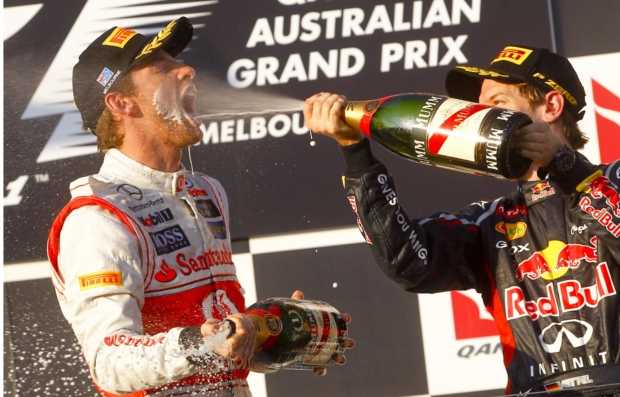 Button lidera el mundial de los campeones -por primera vez hay seis juntos en pista- tras ganar la primera de las 20 carreras del campeonato, en la que cubrió las 58 vueltas al circuito de Albert Park, de 5.303 metros, en un tiempo ganador de una hora, 34 minutos, nueve segundos y 565 milésimas, rodando a un media de 195,991 kilómetros a la hora.