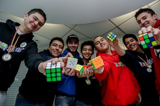 Varios de los integrantes de EduRubiks visitaron las instalaciones de COLPRENSA para hacer una demostración que además de ser deporte y hobby a la vez, no dista mucho de ser un verdadero arte.