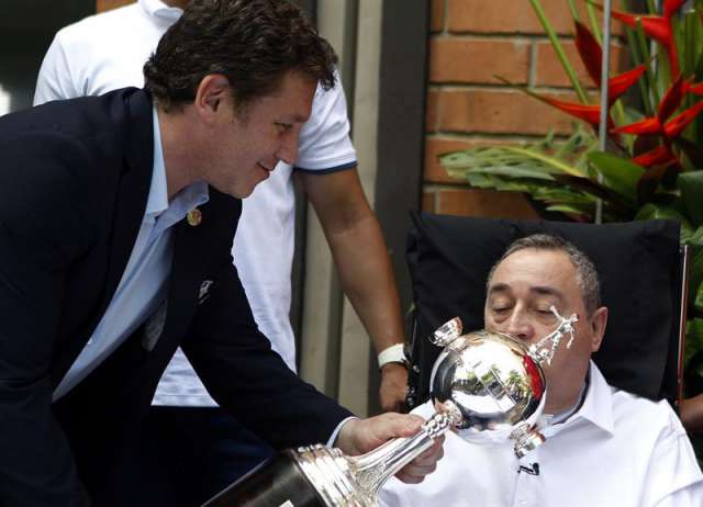 El Campeón de la Vida, uno de los tres técnicos colombianos que ha ganado la Libertadores, junto a Francisco Maturana y Reinado Rueda, recibió el reconocimiento -que él mismo había solicitado- de manos de Alejandro Domínguez, presidente de la Confederación Sudamericana de Fútbol (Conmebol), quien viajó hasta Medellín para ser parte del evento, que se llevó a cabo en la vivienda del entrenador, en el barrio El Poblado.