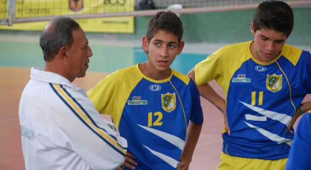 Demetrio Posada en compañía del seleccionado caldense de voleibol infantil masculina representó a Colombia en Brasil el año anterior. El viterbeño fue elegido como el técnico del año por Acord Caldas.