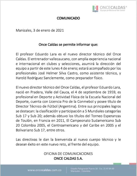 El técnico vallecaucano Eduardo Lara es el nuevo entrenador del Once Caldas para esta temporada.