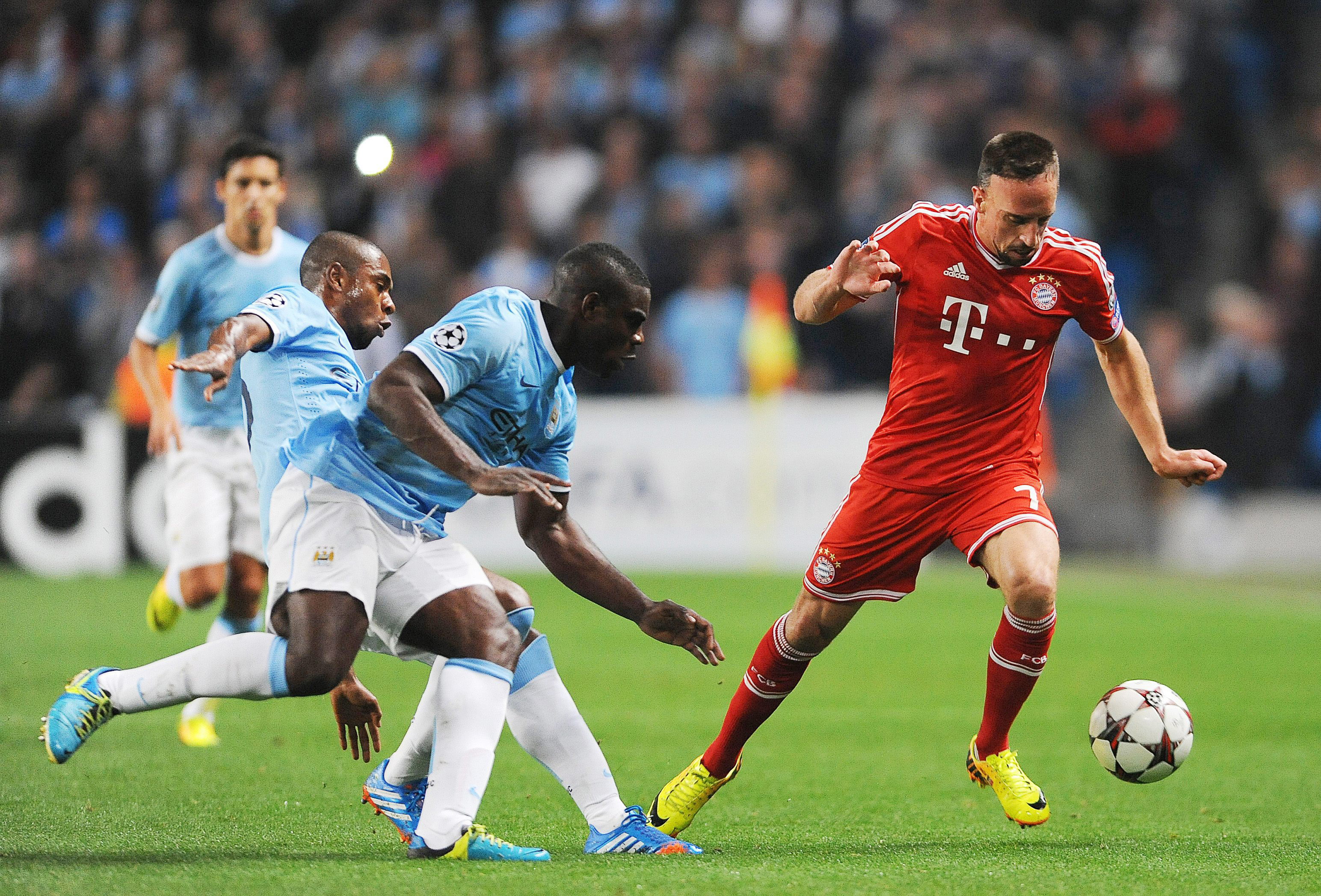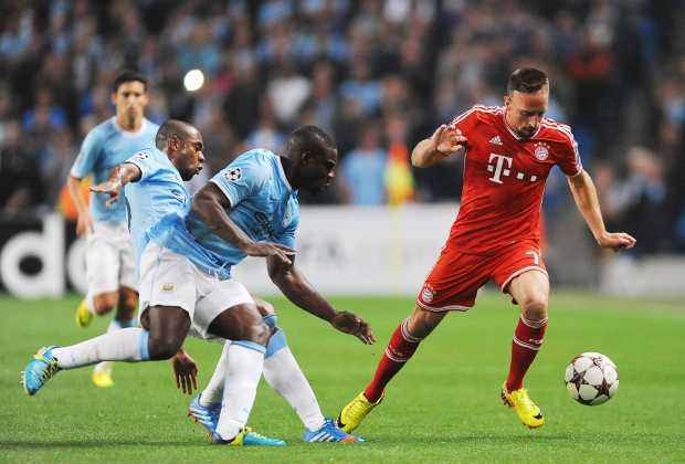 El Bayern impuso una autoridad sin tregua que desarboló al conjunto del chileno Manuel Pellegrini desde los primeros minutos. El francés Franck Ribéry, que aprovechó una acción del brasileño Rafinha, mostró el camino a los siete minutos. Al inicio de la segunda parte echó por tierra los amagos de reacción locales. Thomas Muller marcó a pase de Dante. Cuatro después, a la hora de juego, el holandés Arjen Robben cerró el partido tras un centro de Dante. En el tramo final, el orgullo salió a relucir con el tanto del español Álvaro Negredo.