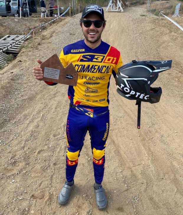 El manizaleño Rafael Gutiérrez ganó este domingo la Copa Catalana de DH (Dowhill). En el podio lo acompañaron los Alex Marin e Ignasi Jorba.