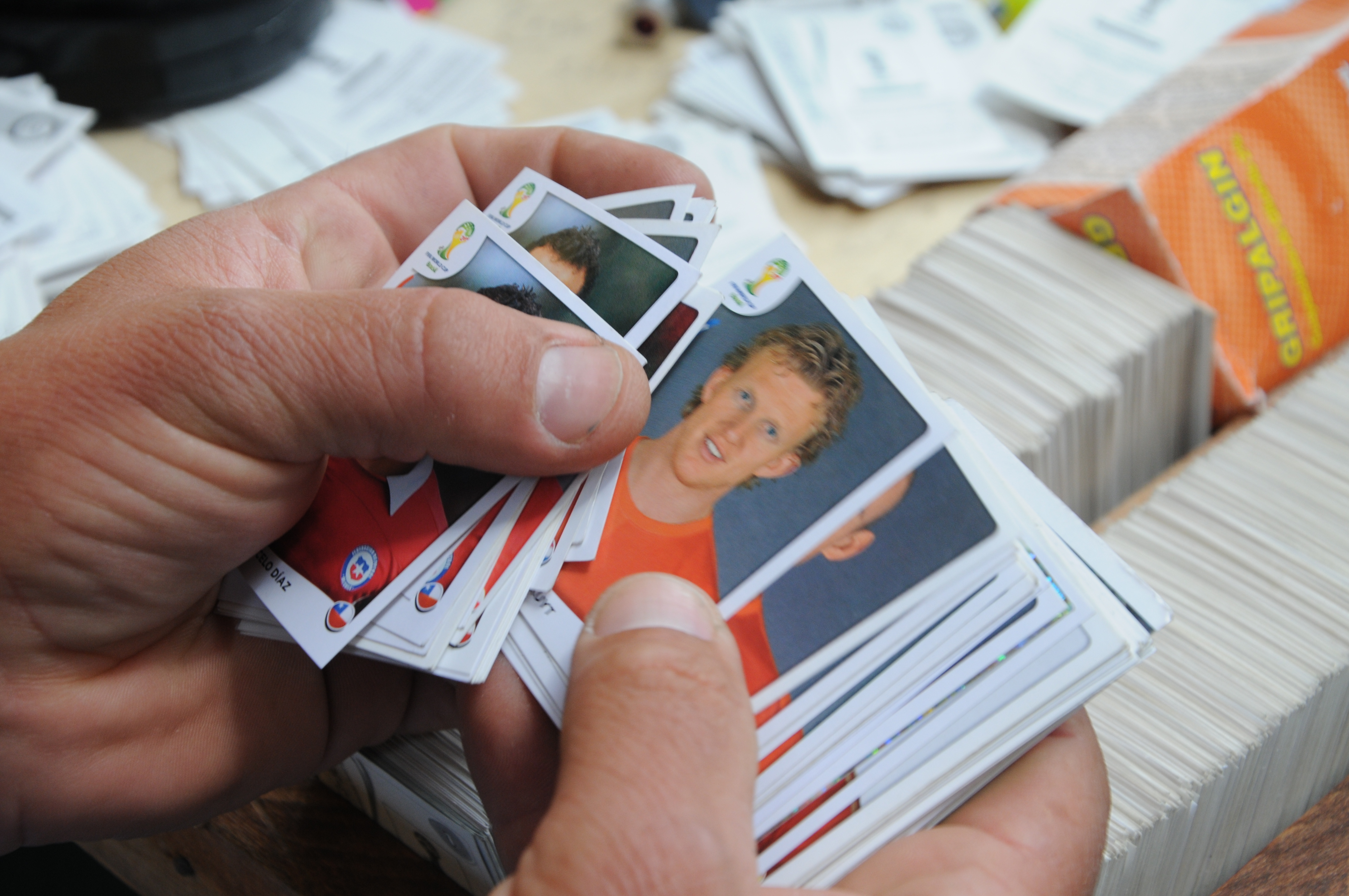 "Por cada caja llega un escudo, eso lo hace escaso para quienes están llenando el álbum", explica Jhon Freddy Castaño, quien agrega que también escasean los jugadores de Italia, Holanda y España.