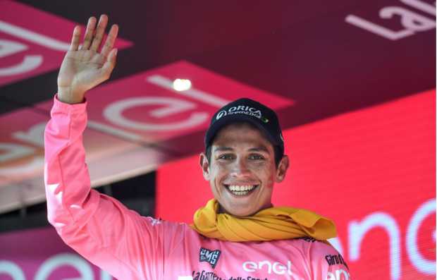 Esteban Chaves(Orica) se mostró "muy feliz por la maglia rosa" y lamentó la caída del holandés Steven Kruijswijk en el descenso del Agnallo, donde se dejó un Giro que tenía encarrilado.