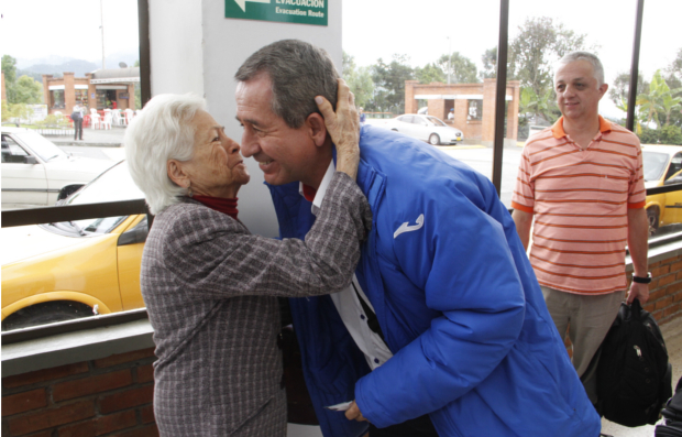 "El niño estuvo con su familia en las gradas y cuando les dieron permiso de entrar a la cancha después de la premiación, nos buscó para la foto y por eso lo llevé", cuenta Jaime, quien ayer volvió a la ciudad y fue recibido en el Aeropuerto La Nubia por doña Nora, su madre.