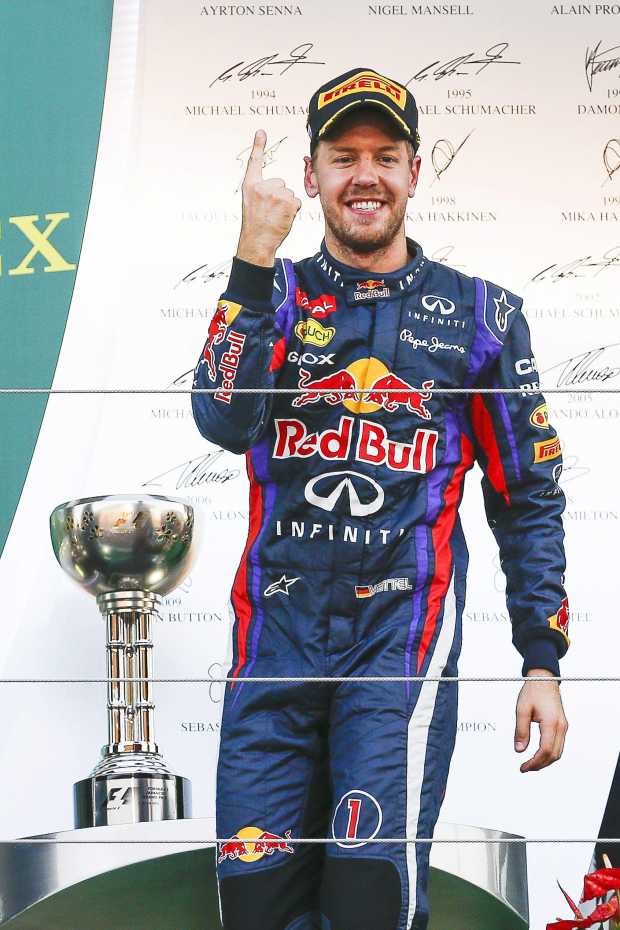 El alemán Sebastian Vettel (Red Bull), líder destacado del Mundial de Fórmula Uno, obtuvo ayer su noveno triunfo del año al ganar el Gran Premio de Japón, pero no pudo festejar aún su cuarto título consecutivo, ya que el español Fernando Alonso (Ferrari) acabó cuarto en Suzuka.