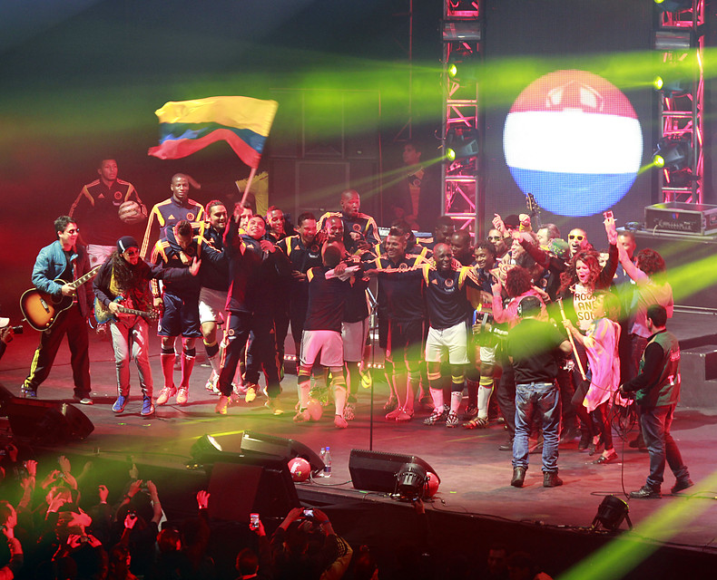 Y la Despedida empezó. Primero fue Carlos Vives, quien puso a vibrar a los colombianos y luego fue Chocquibtown junto a Carlos, para calentar la fría noche capitalina como preámbulo a la fiesta futbolística, que también tuvo un resumen en las pantallas gigantes de lo que fue el proceso de clasificación para el Mundial.