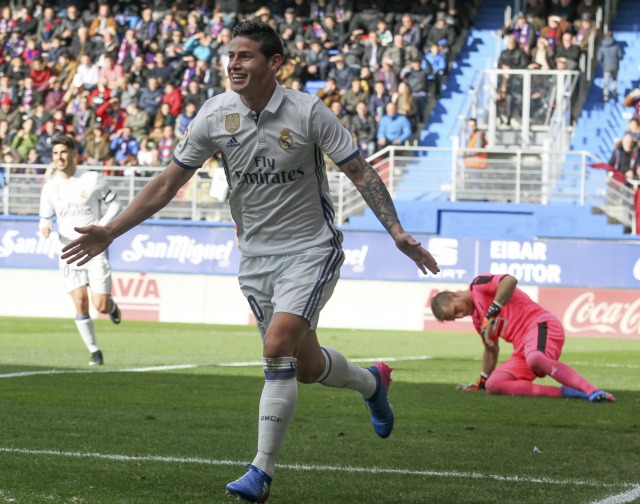 El equipo de Zinedine Zidane puso punto y final a su irregularidad en un partido repleto de actitud y sacrificio para no acusar las bajas de sus líderes ofensivos, el portugués Cristiano Ronaldo y el galés Gareth Bale, para dejar el duelo sentenciado al descanso en Ipurúa, con doblete de Benzema (minutos 14 y 25) y un tanto de James (minuto 29).