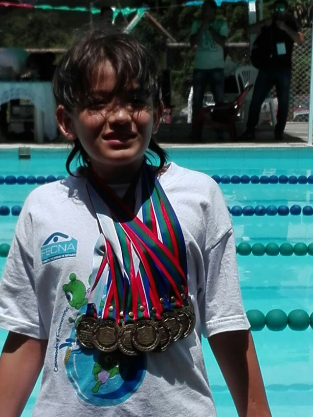 Restrepo, de 11 años, pertenece al club Acuático del Café en donde sobresale por su talento y se proyecta para figurar en competencias nacionales. El deportista compitió en espalda, pecho, libre, 100 metros combinado y relevo.