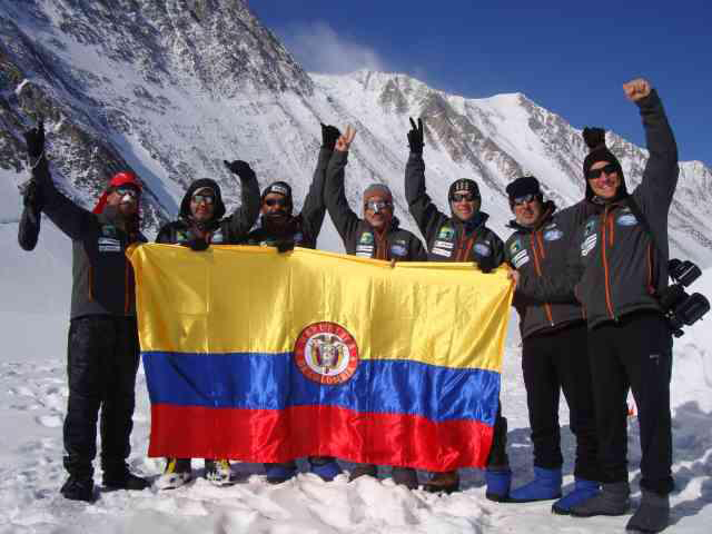 Antes alcanzaron las cimas del Aconcagua (2009), Everest (2010) y Kilimanjaro (2011). Sus integrantes son: Juan Pablo Ruiz (capitán), Marcelo Arbeláez (jefe técnico), Nelson Cardona (material técnico), Juan Pablo Montejo (cámara), José Arata y Sergio Vargas (comunicaciones),Carlos Gómez (logística).