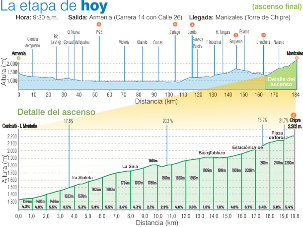 Es una subida parecida en Galibiert, porque no es tan dura, pero es extensa. Hay que advertir que el remate de Manizales es durísimo y es ahí donde las piernas deben responder, porque la exigencia es mayor.