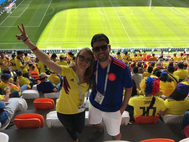 “Estamos muy felices de estar aquí, venimos desde Ibagué en una gran travesía que planeamos desde el año pasado. Llegamos hace unos días a Zúrich, luego a Roma, Madrid, Lisboa, París, Bruselas y en Rusia arribamos a San Petesburgo, luego Moscú hasta llegar a Saransk para ver el debut de nuestra Selección”, aseguró Carlos Pabón, ingeniero de sistemas tolimense.