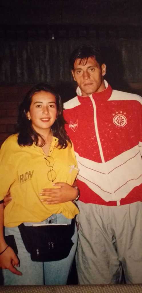 Diana, en sus comienzos, en la inauguración del Palogrande, con el argentino Sergio Goycochea.