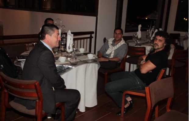 Luego, al caer la tarde, se reunió en Termales del Otoño con Duván Vásquez, gerente general del Club, y Álvaro Andrés González, gerente deportivo. Allí se sentaron en una de las mesas del sitio y comenzaron la reunión.