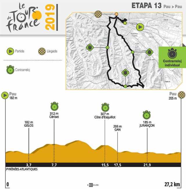 La contrarreloj de hoy abrirá la pelea por el título. El Tour entra en la etapa decisiva los 27 kilómetros con principio y final en Pau.