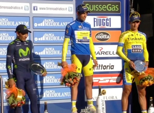 La carrera de los dos mares, como se le conoce, finalizó con una corta contrarreloj de 9 kilómetros que fue conquistada por Adriano Malori, con un tiempo de 10 minutos 13 segundos. En esta prueba, Quintana logró un registro de 10 minutos 51segundos, que solo le permitió descontarle tres segundos al ibérico en la general.