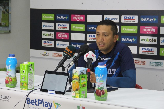 El técnico del Once Caldas Diego Corredor habló este jueves en rueda de prensa sobre el estilo de juego del equipo y de cómo será la estrategia para enfrentar mañana al América de Cali en el estadio Palogrande.