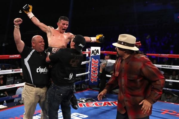 Ese traspiés, en vez de afectar la concentración del colombiano, se convirtió en un impulso para ponerse adelante en el duelo. De a poco fue ablandando a su contrincante hasta que consiguió doblegarlo por completo, luego de romperle la nariz y cortarlo en la parte superior del ojo izquierdo. Ocurrió en el séptimo asalto.