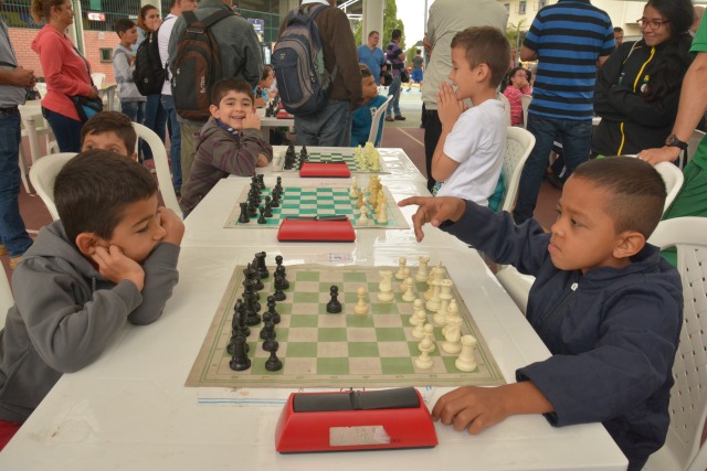 Dos meses jugando ajedrez y dos partidas ganadas. Ese es el balance de la joven carrera de Miguel Montes, de 7 años. "Me voy a enfrentar a él", dice señalando a Juan David Vélez, también de 7 años. "A mi papá le gusta mucho el ajedrez. Él me enseñó a jugar", indica Juan David.
