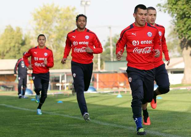 Chile: Claudio Bravo; Mauricio Isla, Marcos González, José Rojas, Eugenio Mena; Gary Medel, Charles Aránguiz, Carlos Carmona, Eduardo Vargas; Alexis Sánchez y Jean Beasejour.