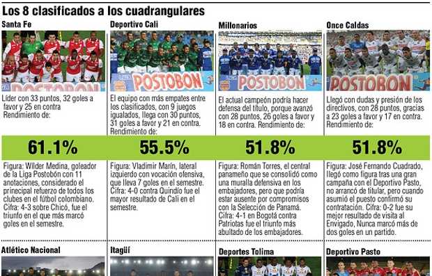 3. Es muy parejo, pero Santa Fe, con su punto invisible en caso de empate, tiene ventaja, por eso hay que sacarles los puntos. Los demás llegamos iguales.