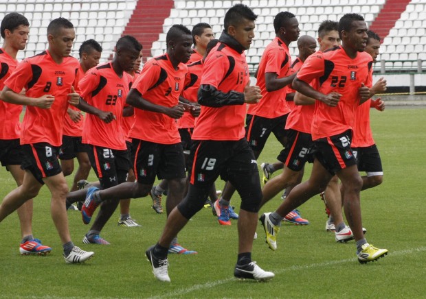 El grupo esperaba ayer por la tarde el desembolso de los $500 millones del patrocinio de la Licorera de Caldas al Club, dinero con el que les pagarán parte de los dos meses y medio de salario que les deben.