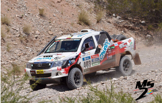 En el entrenamiento de ayer, Mauricio Salazar Velásquez y Mauricio Salazar Sierra, los pilotos caldenses que tomarán la partida en el rally de Perú, cayeron de frente por escalón alto y se golpearon fuerte, pero sin consecuencias graves.