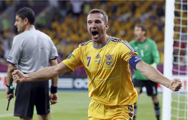 Capitán, 35 años, 109 partidos y 48 goles. Son los números del atacante con la selección ucraniana. Un ídolo en su país. Ayer, en el debut de su equipo nacional en la Eurocopa 2012, en el primer partido de la historia de su selección en la fase final de la competición continental, firmó el 2-1 con dos tantos indispensables.