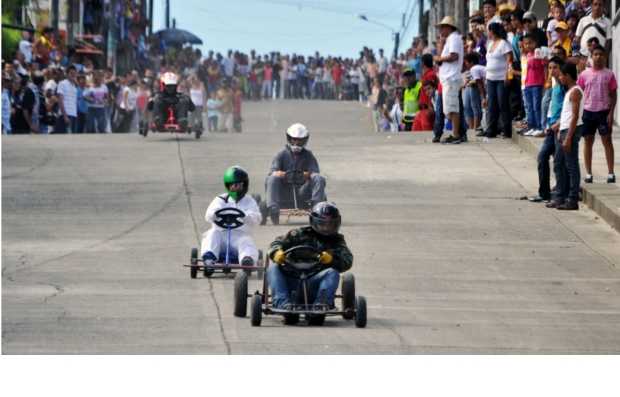 La válida de carritos de balineras tuvo para esta ocasión invitados especiales, como lo fueron un grupo de gomosos de la velocidad de Chinchiná, quienes con sus bólidos con llantas diferentes a las balineras emocionaron al público.