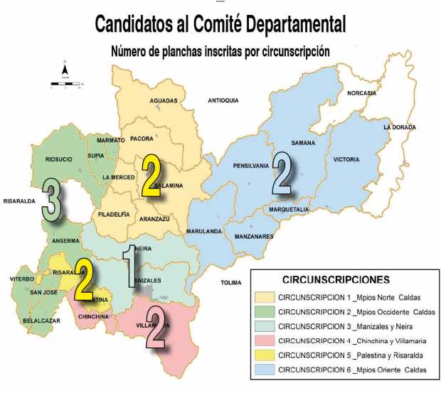 En el oriente de Caldas la competencia promete ser mayor, teniendo en cuenta que es la región donde hay un mayor número de listas por municipio.