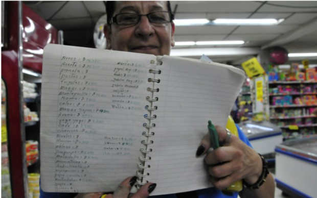 Una muestra de los reajustes que se han sentido este año, se evidencian en la lista que Dora Inés Muñoz hace cada mes antes de mercar. En su cuaderno tiene anotados con tinta roja los precios que pagó el mes pasado y con verde, los de este mes. Según sus notas, el paquete con cinco quilos de arroz subió $2 mil 280; los condimentos aumentaron $400 y la mantequilla, $550. Entre tanto, productos como los guantes de cocina, la avena y el papel higiénico los compró a igual precio.