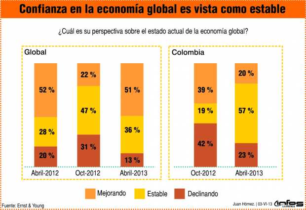 Mientras a nivel mundial, al parecer hay confianza de que la economía comience a mejorar, en Colombia hay menor optimismo, aunque se le apuesta a la estabilidad.