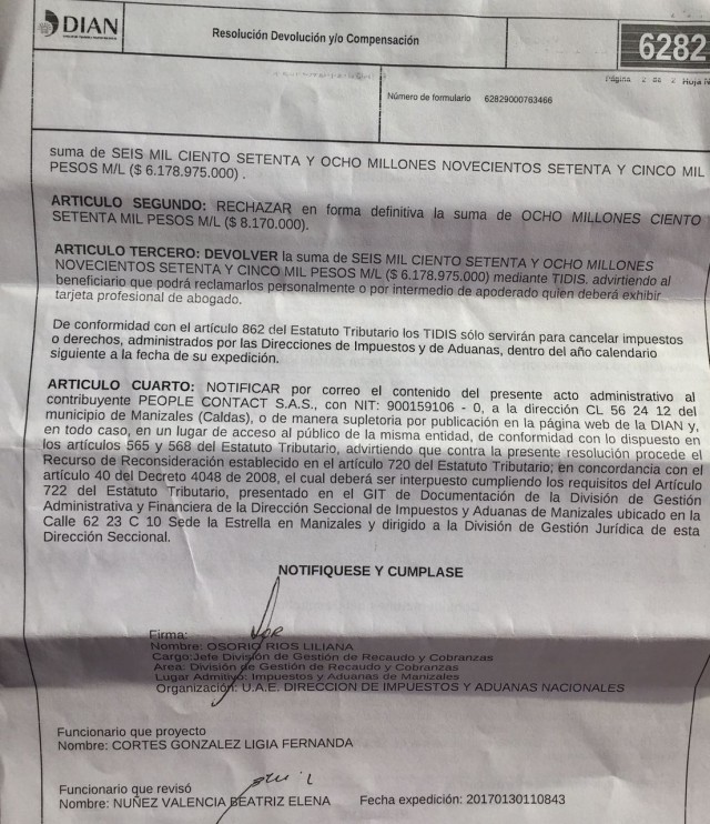 De acuerdo con la jefe de la división de gestión de recaudo y cobranzas, Liliana Osorio Ríos, el proceso se genera por saldos a favor de la entidad, pese a lo cual, resaltó, no se puede emitir un concepto adicional, por respeto a la empresa.