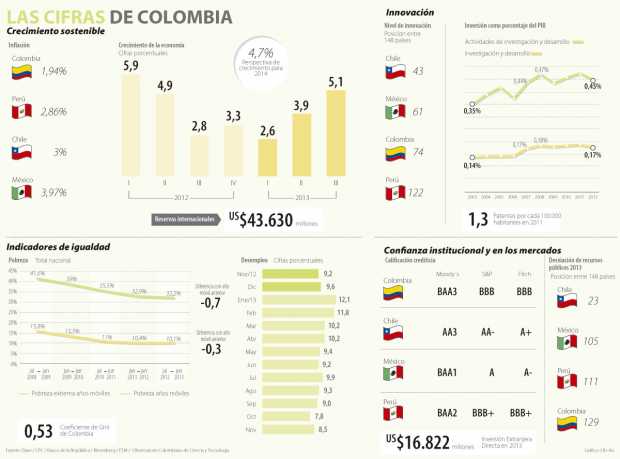 El otro punto son las nuevas expectativas de la sociedad y la necesidad de crear confianza tanto en las instituciones como en el mercado. En este último aspecto, Colombia ha recibido mejoras en la calificación crediticia de entidades como Fitch Ratings y Standard & Poor’s. Esto se ve reflejado en la IED, según Jaime Acosta Puertas, investigador y consultor independiente, pero el problema está en que en la minería la mayor inversión es de enclave y muy poca en sectores industriales y mucho menos de alta tecnología. Colombia también mostrará los resultados de las reformas de los años pasados.