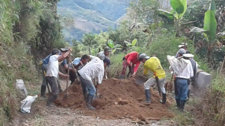 Marquetalia. Un trabajo comunal adelanta la comunidad para mejorar las vías terciarias, con la ayuda de la Gobernación de Caldas. El intenso invierno hizo que se redoblarán los esfuerzos con las autoridades comunales de cada sección.