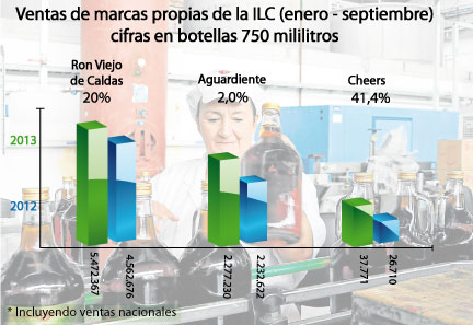 Esto permitió que en total las ventas de licores propios de la ILC, incluyendo ron, aguardiente y la crema de ron Cheers, tanto en el mercado nacional como externo, llegaran a las 7,8 millones de botellas a septiembre, un aumento del 7,7%.